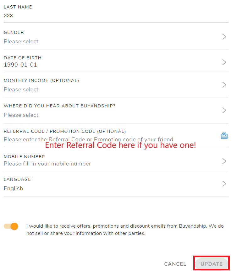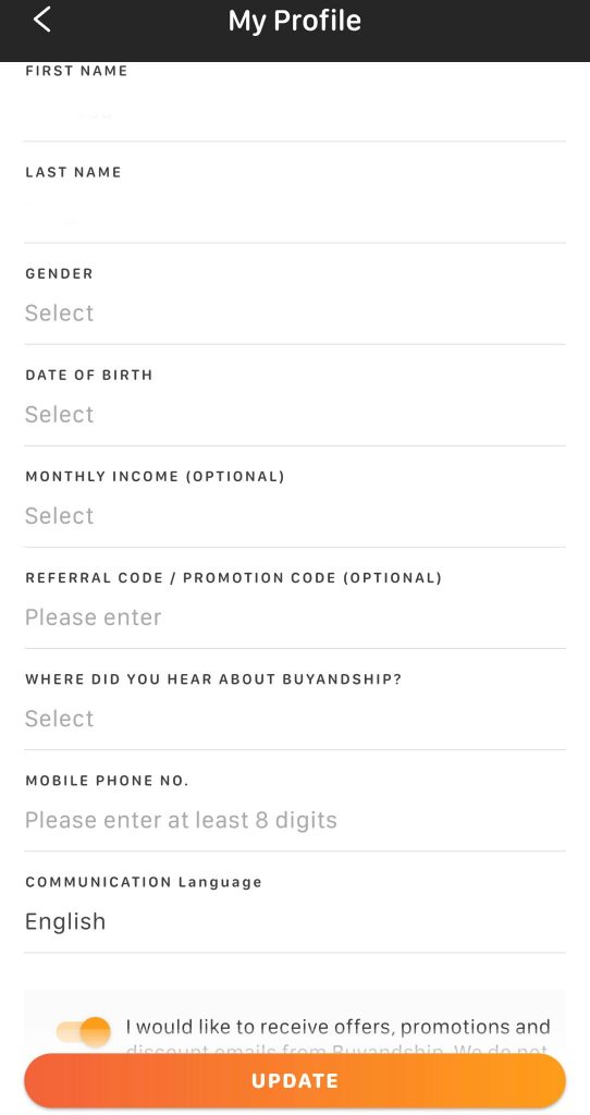 Download Buy&Ship’s mobile app, click “Sign Up” at the bottom to become a new member.