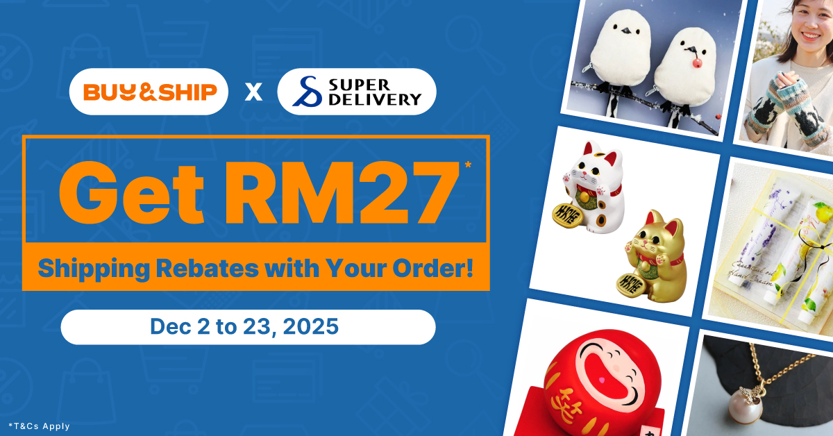 | How to Join | Simply place an order on the Super Delivery Japan site during the promotion period and ship it to the Buy&Ship Japan warehouse address for forwarding to Malaysia to receive an RM27 shipping rebate. |